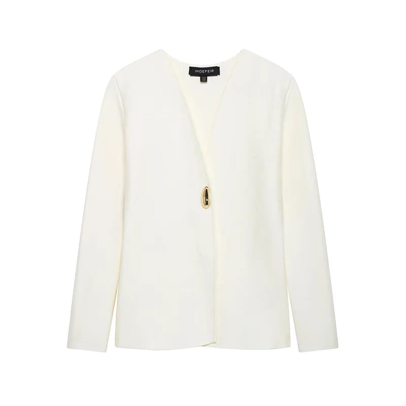 TF.MLN Women Elegant Knitted Cardigan Single Button Women V-neck Long  Sleeve Sweaters 2025 Spring New Female Solid Streetwear